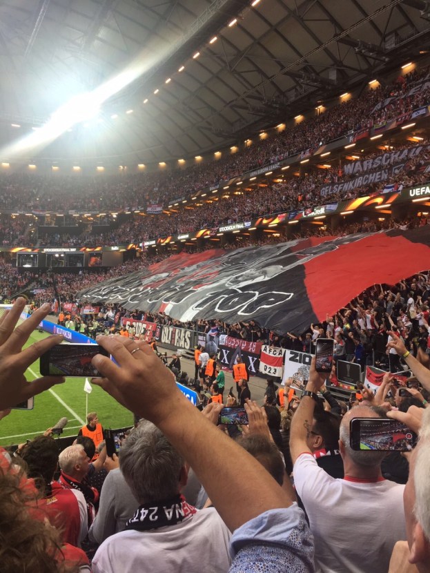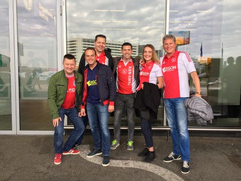 Geen plan, geen bussen, geen controle, complete chaos!! Dat begon al op Schiphol. Iedereen nog in een opperbeste stemming en een groot geloof dat we die cup wel even zouden ophalen met zoals ik op EénVandaag ’s avonds al had geroepen met voetbal van de 22e eeuw. Over elkaar, langs elkaar, door elkaar wilde we allemaal tegelijk naar de incheckbalie, maar dat kan niet. Maar als er geen controle is gebeurt het toch, met een vriendelijke chaos tot gevolg. Na een vroege borrel, waarvan we toen nog dachten rustaaaaghhhhh, want er gaan er nog vele volgen zaten we lekker te keuvelen over de mooiste club en de aankomende wedstrijd. Tete of toch Veldman? En is Schöne wel goed genoeg voor dit niveau of toch maar Donny? De meningen liepen uiteen maar we zouden wel zien, de cup zat toch al in de knip zo lulden we.
