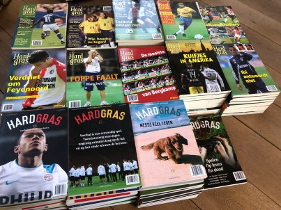 Ik kan niet zeggen dat ik een warm gevoel krijg van het woord verzamelaar – en toch kreeg ik vrijdag de twinkeling in mijn ogen toen ik de deur van mijn huis open deed. Wat was het geval. Al weken keek ik regelmatig liggend vanaf mijn bank naar de boekenkast en zag dan die opeenstapeling van Hard Gras edities. U weet wel dat zelfbenoemde ‘literaire voetbalmagazine’. Alles stond door elkaar van editie 3 tot en met editie 131. Ik wist dat er een paar ontbraken. Dat zijn van die schaarse edities. Nummer 1, 2, 7 en 13 had ik kortgeleden al op de kop getikt bij een antiquariaat – en hiermee dacht ik mijn collectie compleet te hebben. Niets van dat alles bleek vorige week. Nu in corona tijd – waarin we allemaal iets meer tijd over schijnen te hebben – eens echt gekeken welke edities er nu nog misten. Eén voor eén uit de kast gehaald en in chronologische volgorde op stapeltjes van tien gelegd. Uiteindelijk tot de conclusie gekomen dat de nummers 21 – de Willem van Hanegem special – én een echt collectors item – en de verdwaalde editie nummer 82 nog ontbraken. Die laatste heb ik zeker eerder in de kast gehad maar één van mijn vrienden zal deze wel eens proletarisch geleend hebben – vermoed ik. Nogmaals een zoekopdracht gegeven voor die laatste twee bij het antiquariaat, en binnen ‘no time’ antwoord dat ze ook deze edities voor mij hadden gevonden. De verzendkosten waren bijkans hoger dan de prijs van de boekjes – maar wat geeft dat in ruil voor een gelukzalig gevoel. En vrijdag was het zover. Omhuld in een stevige bruine kartonnen envelop lagen ze op de deurmat. Met hetzelfde euforische gevoel van een kind – wat zijn verjaardagscadeau mag openmaken – scheurde ik de bruine envelop kapot en zag de nog in prima staat verkerende Hard Gras 21 en 82 te voorschijn komen. Nummer 21 komt uit de vorige eeuw en nummer 82 – met Zlatan op de kaft zal ook al wel tien jaar oud zijn – maar dat is in deze van ondergeschikt belang. De collectie is compleet! Zonder één letter van beide boekjes te lezen voegde ik ze toe in de juiste stapel – keek nog een keer liefkozend naar die prachtige 13 stapeltjes plus die ene losse en ging over tot de orde van de dag.