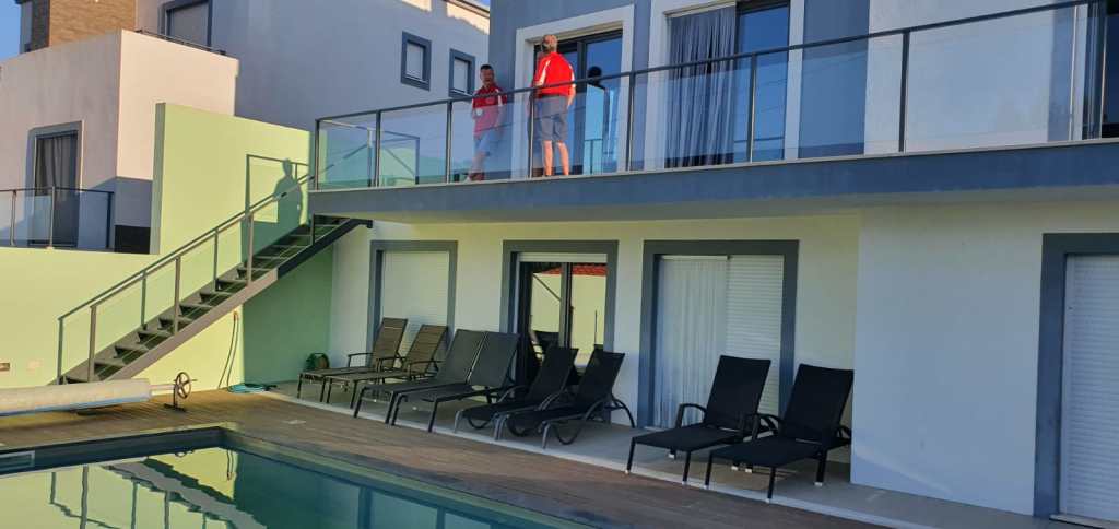 Na afloop van de ronde vol verhalen op het terras evalueren waar we – zoals een goede golfer betaamt – punten hadden laten liggen. Maar de eindconclusie was dat deze baan héél héél mooi maar ook héél héél moeilijk was, waarbij het op de greens nauwelijks te doen was, zo snel. Eindconclusie een topbaan!! Hierna vol verwachting naar onze Casa Kamer in Casais de Mestre Mendo. Van een topbaan naar een tophuis, we deden het in minder dan een kwartier. Aangekomen vielen de monden open, zo mooi!