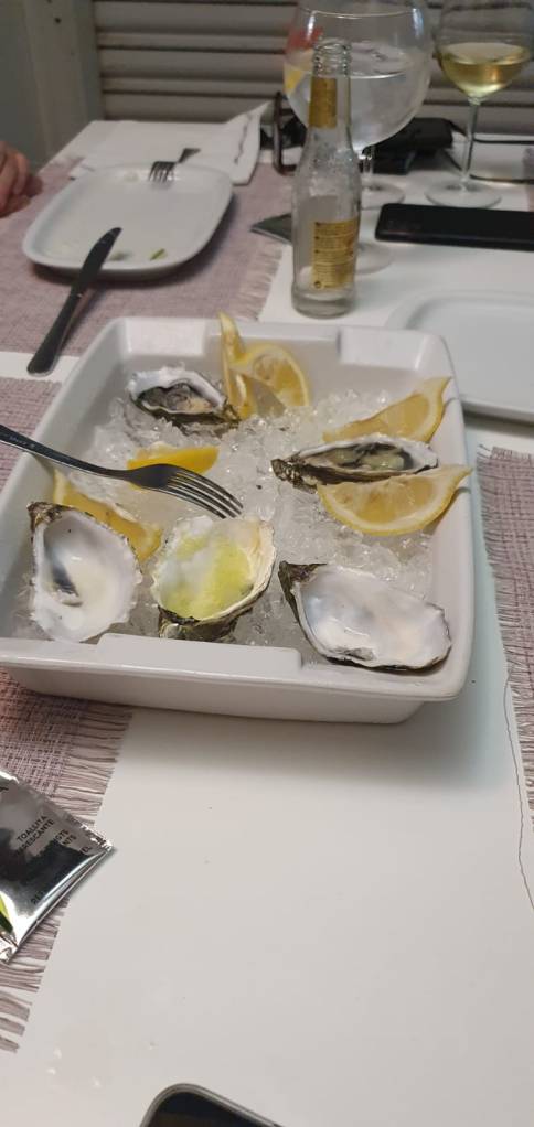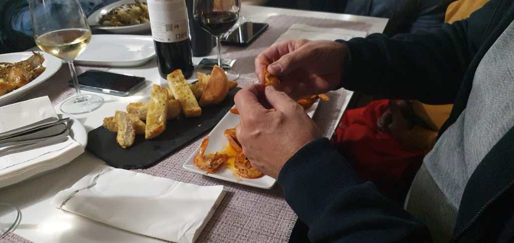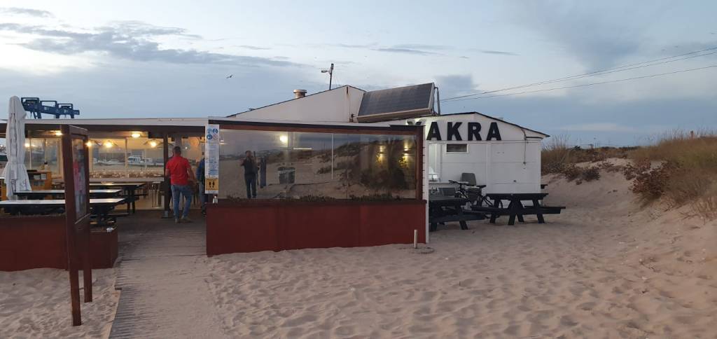 Na wat gesnuffel in het Casa Kramer boek kozen we we de nummer 1 als locatie voor het eten van die avond. Op naar Xakra aan het strand van Peniche. Zij hadden alleen nog buiten plek bij de reservering, maar ook dat deerde niet, al hadden we allemaal wel iets van een jas of een lange mouwen dingetje mee voor het geval het echt koud zou worden. Het bleef natuurlijk wel eind september. Na wat aanvankelijke scepsis werd het een avond om nooit te vergeten. Alles was dubbel zes deze avond.