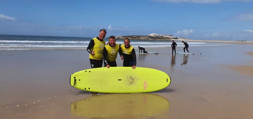 De zaterdag – doorgaans de rustdag bij ’t Excuus, maar daar dacht de organisatie dit jaar anders over. We lieten ze nog even uitslapen, maar toen op naar het Baleal surfstrand. Bij het zien van de hoge golven haakten er een paar af, en kozen voor een rustige dag op strand, no problem!