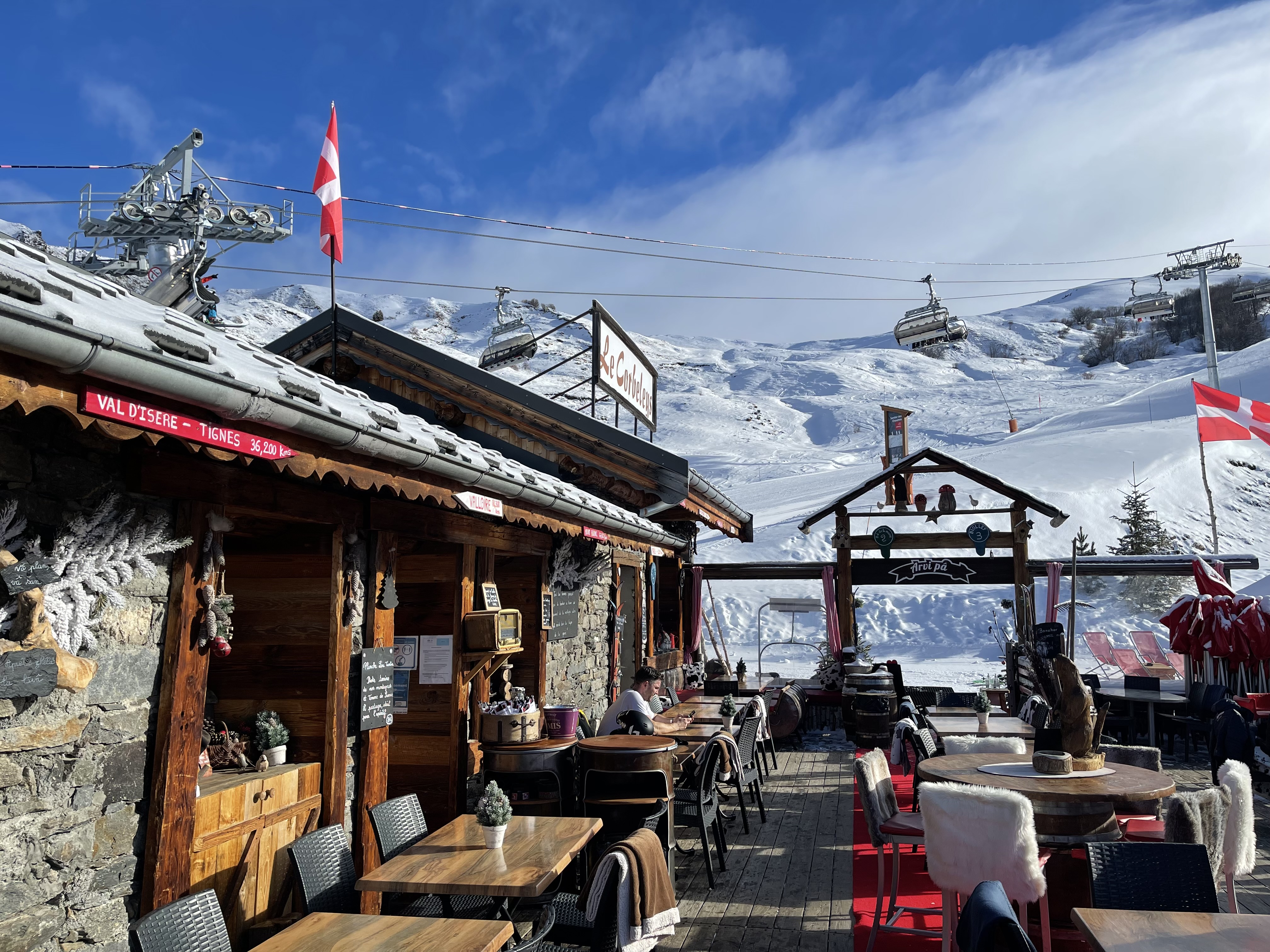 Van een rustig eerste skidag kwam weinig terecht – zoveel honger hadden we naar meer kilometers. Het was ver in de middag toen we pas neerploften voor een welverdiende lunch in Saint Martin de Belleville. Heerlijk gezeten in het zonnetje met een werkelijk fantastische lunch, wat een luxe, en dan was dag één nog niet eens voorbij!